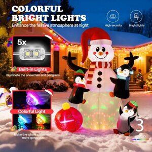 🆕6FT Christmas Inflatable Snowman with Penguin and Red Ball Outdoor Decoration