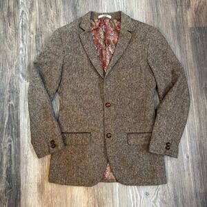 EDGE by WD NY Slim Fit Tweed Blazer Paisley Lined Brown Women's Jacket Size S