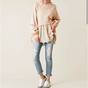 Free People Sweet Streets Muted Pink Tunic Style Hoodie Size Small