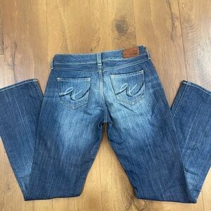 These Express Eva Boot Cut jeans are in pre-owned, excellent condition, reflecting careful wear and maintenance. They maintain their original shape and color, ready to become a go-to item in your collection. The craftsmanship of Express jeans ensures a garment that looks great and feels good.