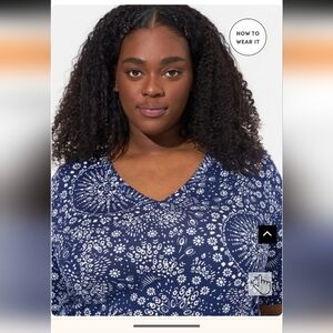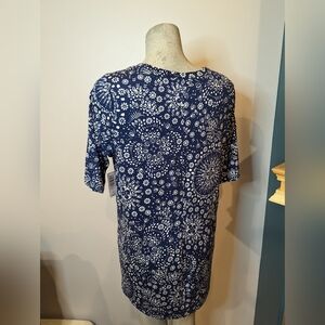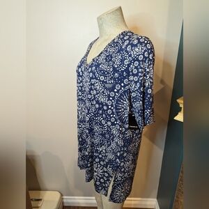 Favorite Tunic Super Soft V-Neck Side Slit blue & white mandala Tee plus size 1x