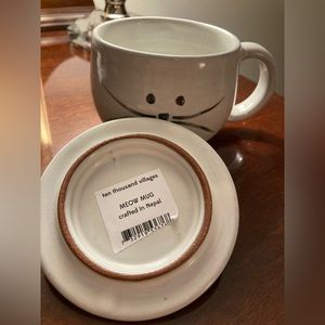 The Meow Mug is an engobe ceramic piece featuring a removable lid with kitty ears for steeping tea and a meowy cute cat face on the front. Handcrafted by fair trade artisans in Nepal.