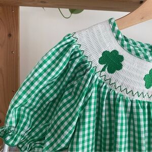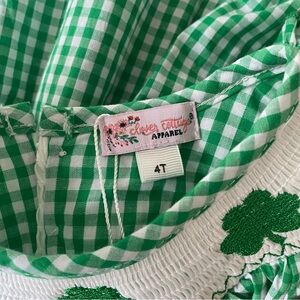 St. Patrick’s Day Shamrock Smocked Gingham Plaid Bishop Dress 4t 5t