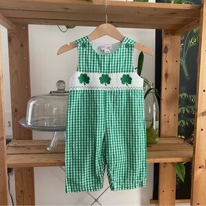 St. Patrick’s Day Shamrock Embroidered Smocked Jon Jon Overall 6-12 months
