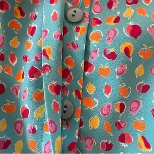 VINTAGE 90s Liz Claiborne Fruit Print Button Front Midi Dress Blue