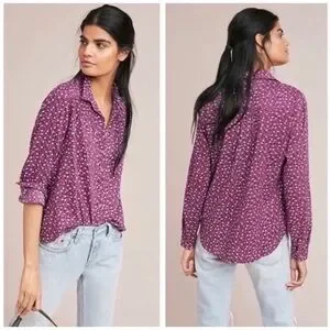 ANTHROPOLOGIE MAEVE Purple Floral Calico Button Down Shirt Size 10