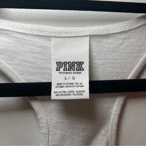 PINK Racerback Tank Top Size Large Graphic Logo With Black & White Stripes Stars