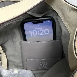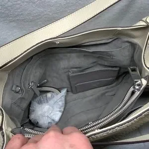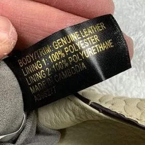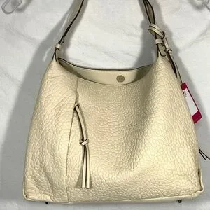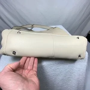 • Cream colored textured like leather with silver tone hardware