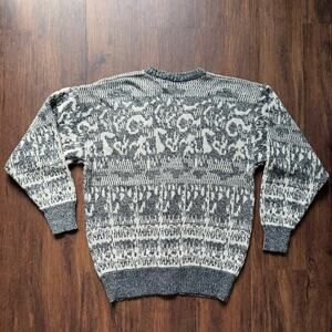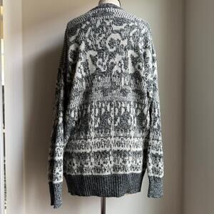Vintage Cardigan Cozy Jacquard Knit Sweater Gray White Size Large Cabincore