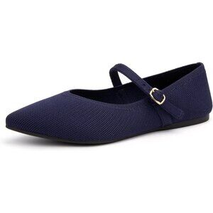 Women's Blue Knit Pointed Toe Ballet Flat with Ankle Strap Casual Comfort Shoes