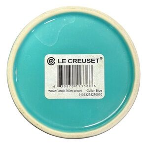 Beautiful Le Creuset stoneware water carafe in the stunning Gullah Blue color. Features a sleek, timeless silhouette with the iconic embossed Le Creuset branding and original cork stopper.