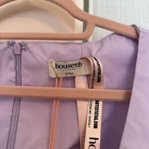 House of CB Cupid Pastel Lilac Pleated Cotton Mini Dress. Size S, NWT. Longer length, regular cup.
