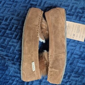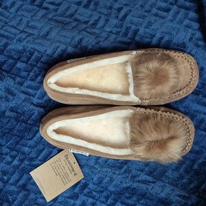 Bearpaw Suede Wide Width Slippers with Pom-Pom Size 9, New With Tags!