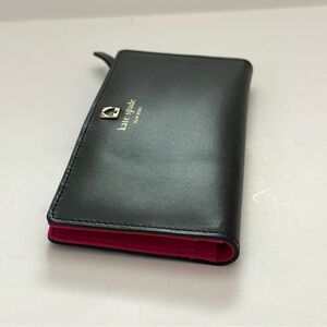Kate Spade Black Wallet | Saffiano Leather Logo Wallet | Pink & Black