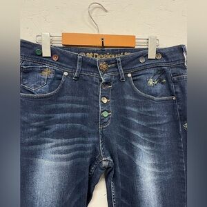 Desigual Yes! Denim Embroidered Button Fly Jeans, Size 28 (see measurements)