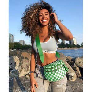 Women Kelly Green Imported Polyester Checkered Crossbody Fanny Belt Bum Bag