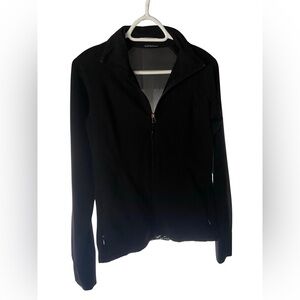 Sleek black zip up sweater great for yoga, workouts or sports! Breathable and flattering