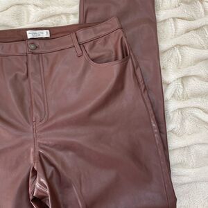 Abercrombie & Fitch leather '90s Straight Ultra High Rise brown pants Size 34