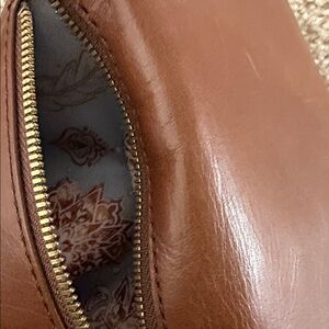 HOBO International Trifold Tan Leather Wallet with Gold Accent