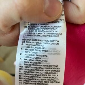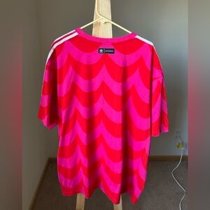 Bold pink and red top by Adidad X Marimekko. Features striking graphic design. 32.5” PTP, slight stretch.