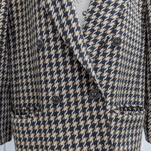 Garey Petites women's vintage houndstooth double breasted oversized wool blazer