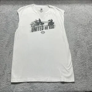 Harley-Davidson Shirt Men XL White United We Ride Sleeveless V-Notch Graphic