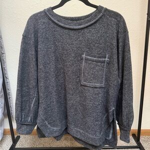 Gray luxe hacci (suuuuper soft, cozy, fleecy, plush fabric) long sleeve top with side slits. Never worn. Size s/m, true to size fit