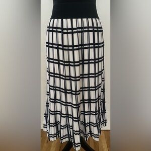 Metrowear Pleated Cream & Black Lined Midi Skirt W/Elastic Waist Sz L - NWT