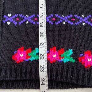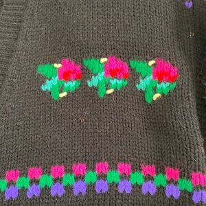 VTG 80s Silvercord Black Cardigan Colorful Floral Patterns