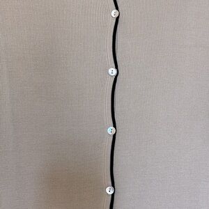 Ann Taylor, silk cardigan, button up cardigan, neutral cardigan, black trim cardigan, workwear cardigan, lightweight sweater, luxury basics, timeless style, classic cardigan, office outfit, minimalist fashion, soft knitwear, chic neutral tones, business casual look, women’s cardigan, size large cardigan, elegant layering piece, designer cardigan, beige and black cardigan, fall layering, spring fashion, transitional wardrobe, soft silk sweater, smart casual style, polished outfit essential