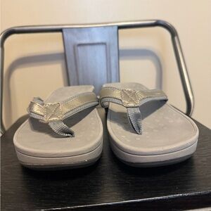 Vionic High Tide Silver Thong Wedge Sandals Women’s 9 Orthotic