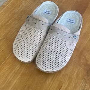 Earth Origins Aurora Jessica perforated suede clogs beige size 8.5 women’s