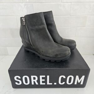 Sorel Joan of Arctic Wedge Ankle Bootie Boot Black Leather Side Zip Waterproof 8