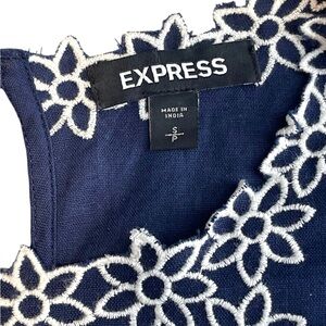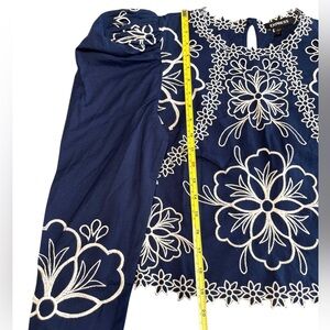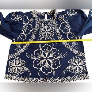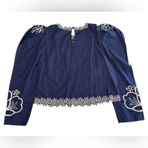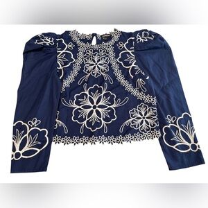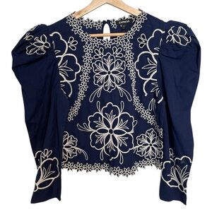 Express Blue Top Puff Sleeve Blouse Bohemian Embroidered Floral Size Small