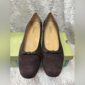 Trotters Darcy Brown Suede Low Heel Bow Pumps 7.5 T6002