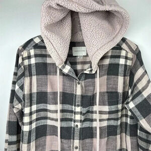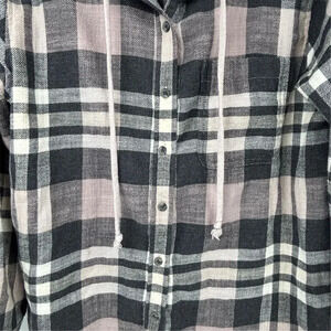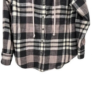 American Eagle XS Plaid Flannel Hooded Button-Up Shirt Multicolor