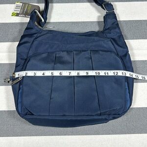 Travelon womens navy blue pleated hobo crossbody bag RFID travel purse adjustable strap