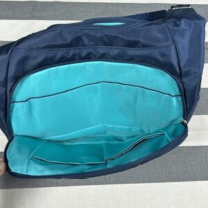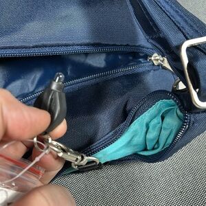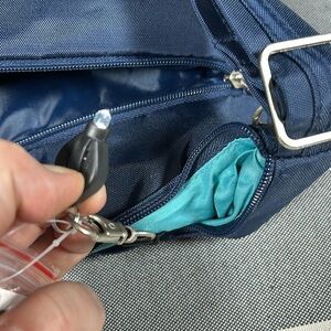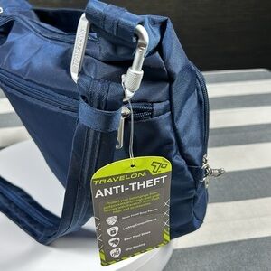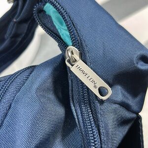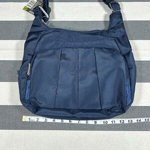 Travelon navy blue secure crossbody shoulder bag with compartments and flashlight