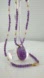 • Pendant: A substantial, oval-shaped natural amethyst cabochon with detailed artisan carvings.