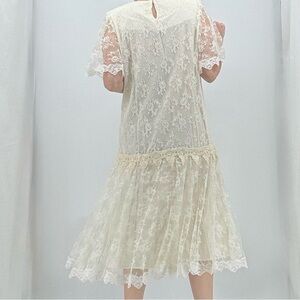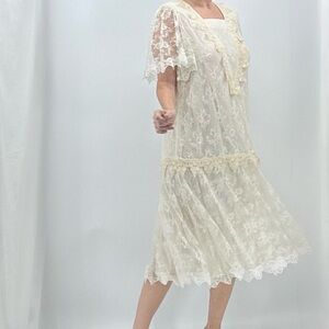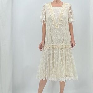 Vintage 80s Victorian Flapper Roaring 20s Wedding Cosplay Lace Drop Waist Dress