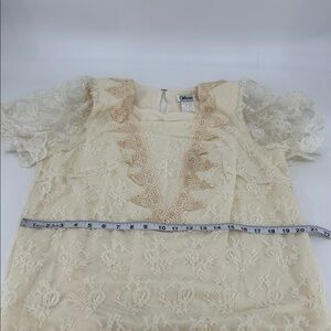 This beautiful lace Vintage 80s drop waist midi dress is perfect for elegant occasions. Its delicate design offers a timeless and sophisticated look. Interior is lined. Perfect for a Victorian aesthetic. Makes a great Wedding Gown. Make a statement at your next Roaring 20s Flapper party. Versatile. Size 8. Great condition, however, the interior front lining by hem has a mark. Not noticeable, as it is interior. Please see photos for measurements.