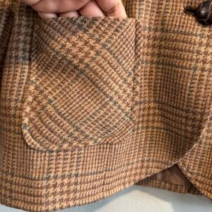 Elevate your style with this chic brown plaid jacket. Perfect for any occasion, this jacket offers both comfort and elegance.