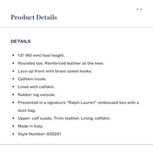 These are new in box Purple Label Ralph Lauren Darrow Lug Brown Calf Suede Boots, as indicated by the product tag and pristine condition. The boots feature a rich brown calf suede upper with a contrasting tan leather heel counter embossed with "Ralph Lauren." They have a lace-up front with brass speed hooks and a durable black rubber lug outsole by Vibram. The interior is lined with calfskin, and the insole is stamped "Ralph Lauren MADE IN ITALY." The boots have a 1.5" (40 mm) heel height.