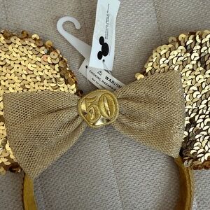 Disneyland 50th Anniversary Gold Minnie Ears NWT
