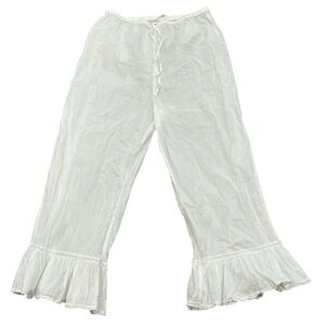 Zara Elegant White Ruffle Hem Pants Lace Detailing Light weight boho Airy Costal