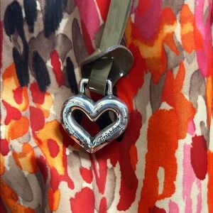 Silver hardware. Scratching on some of the hardware including the heart.