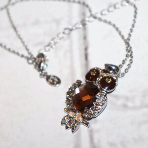 Silver and brown rhinestone owl necklace by Cookie Owl 15-20"