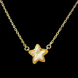 Shine bright with this elegant gold star pendant necklace. Perfect for adding a touch of glamour to any outfit. This necklace is in excellent used condition. A beautiful addition or any outfit.