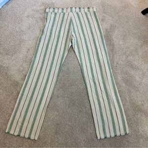 Zara tan beige green striped rustic boho The Beth Pant Sz L NWT high rise