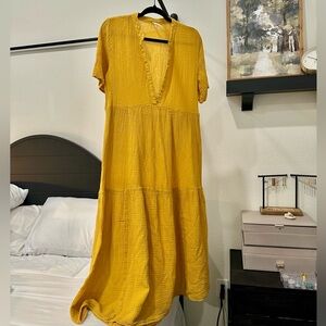 Anthropologie Kallie Flowy Cotton Gauze Maxi Dress. Mustard yellow. Size M.